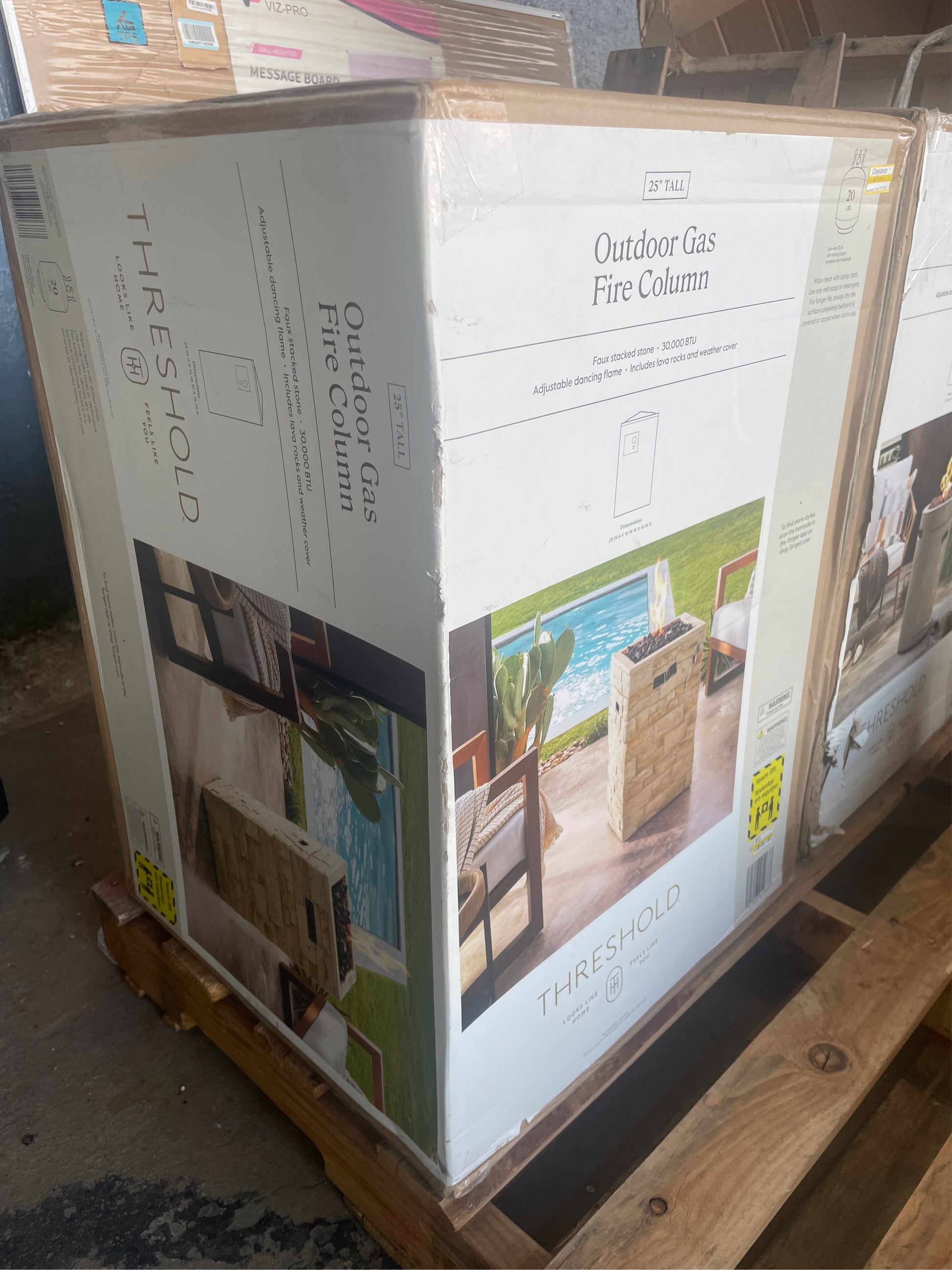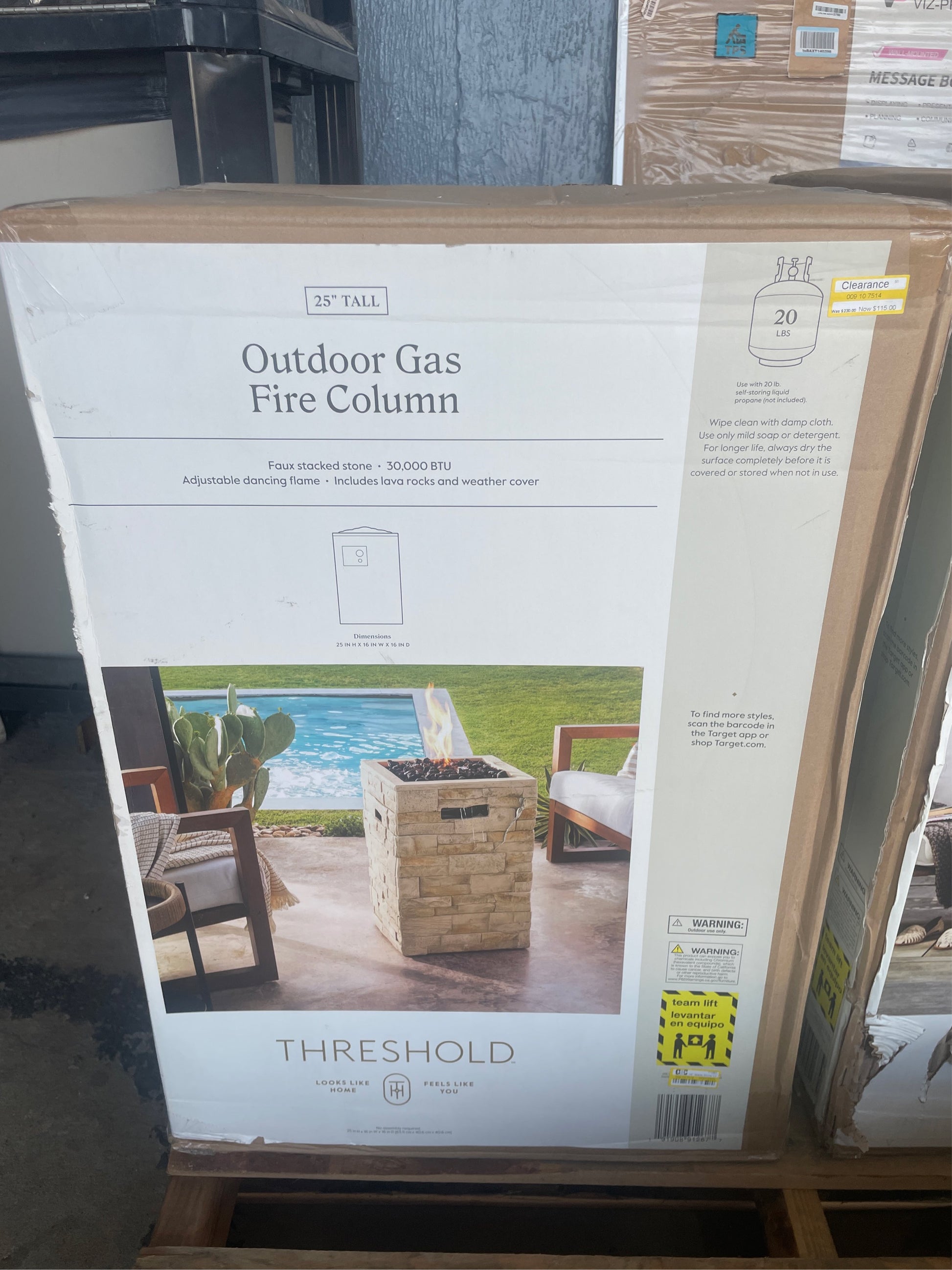 Create a cozy ambiance for gathering in your outdoor area with this 16 Stack Stone Liquid Propane Fire Column from Threshold . This patio fire column is designed for use with a 20-pound liquid propane tank (not included), and comes with lava rocks and a weather cover. The elegant stacked-stone design will complement a variety of patio furniture and decor schemes, and the fire column boasts an adjustable dancing flame and maximum heat output of up to 30,000 BTU. Threshold : Quality & Design / Casual classics for house and home..