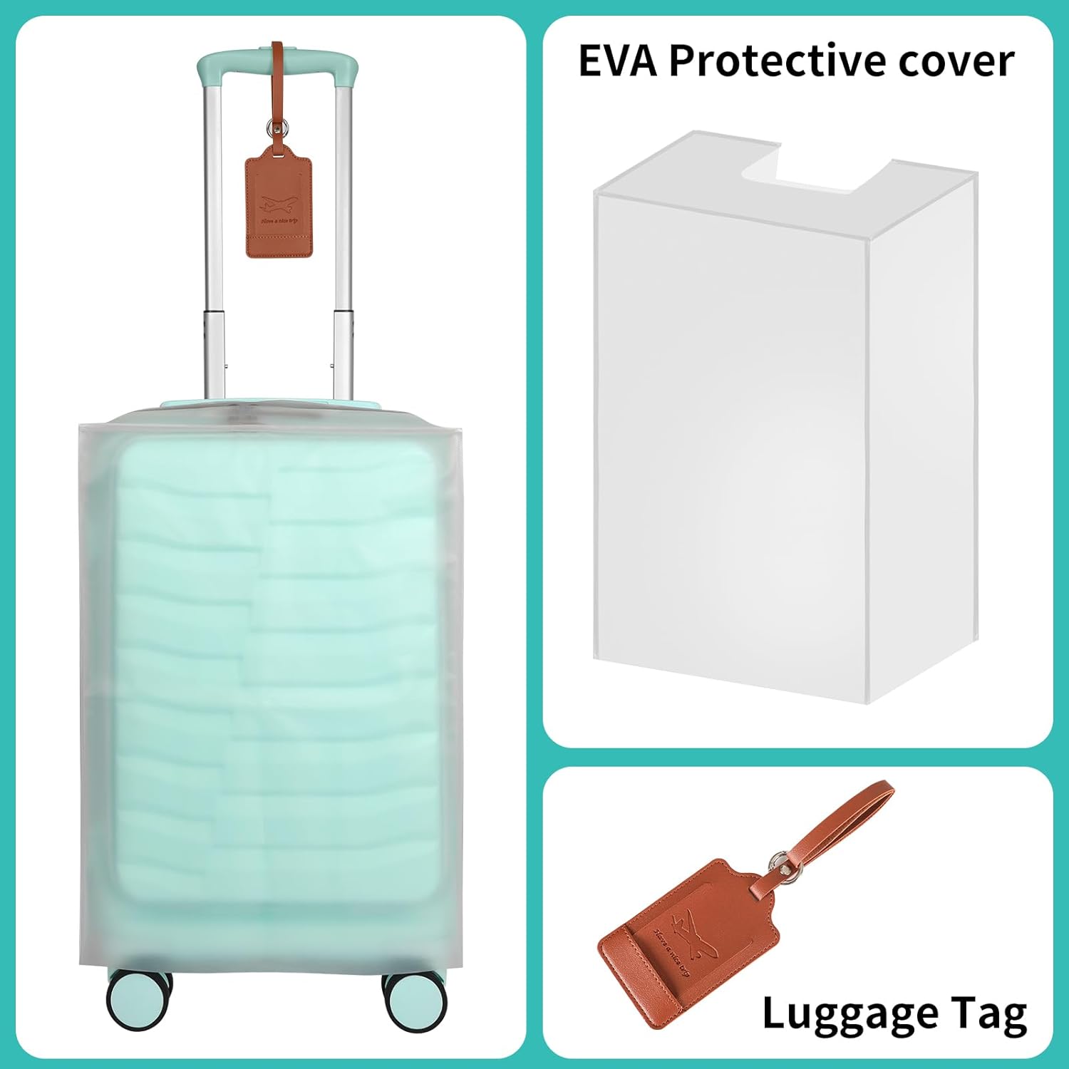 Airline Approved: Carry on 22' 14 9 , complies with a wide range of airline standards to minimize additional costs. Luggage Cover and Tag: The set includes an EVA cover to protect your luggage from scratches, stains, dust or damage; and a luggage tag to help you quickly find your suitcase amongst all the other luggage. Front Open Pocket Design: A convenient front-opening pocket with multiple compartments and pockets for organizing electronic devices such as laptops, tablets, and files provides quick access to what you need without having to open your entire suitcase. ABS+PC Material: The utilization of ABS+PC makes the luggage relatively lightweight and portable, showcases excellent wear resistance, possesses a solid shell, can endure a certain amount of external impact, reduces the burden, and boosts travel efficiency.