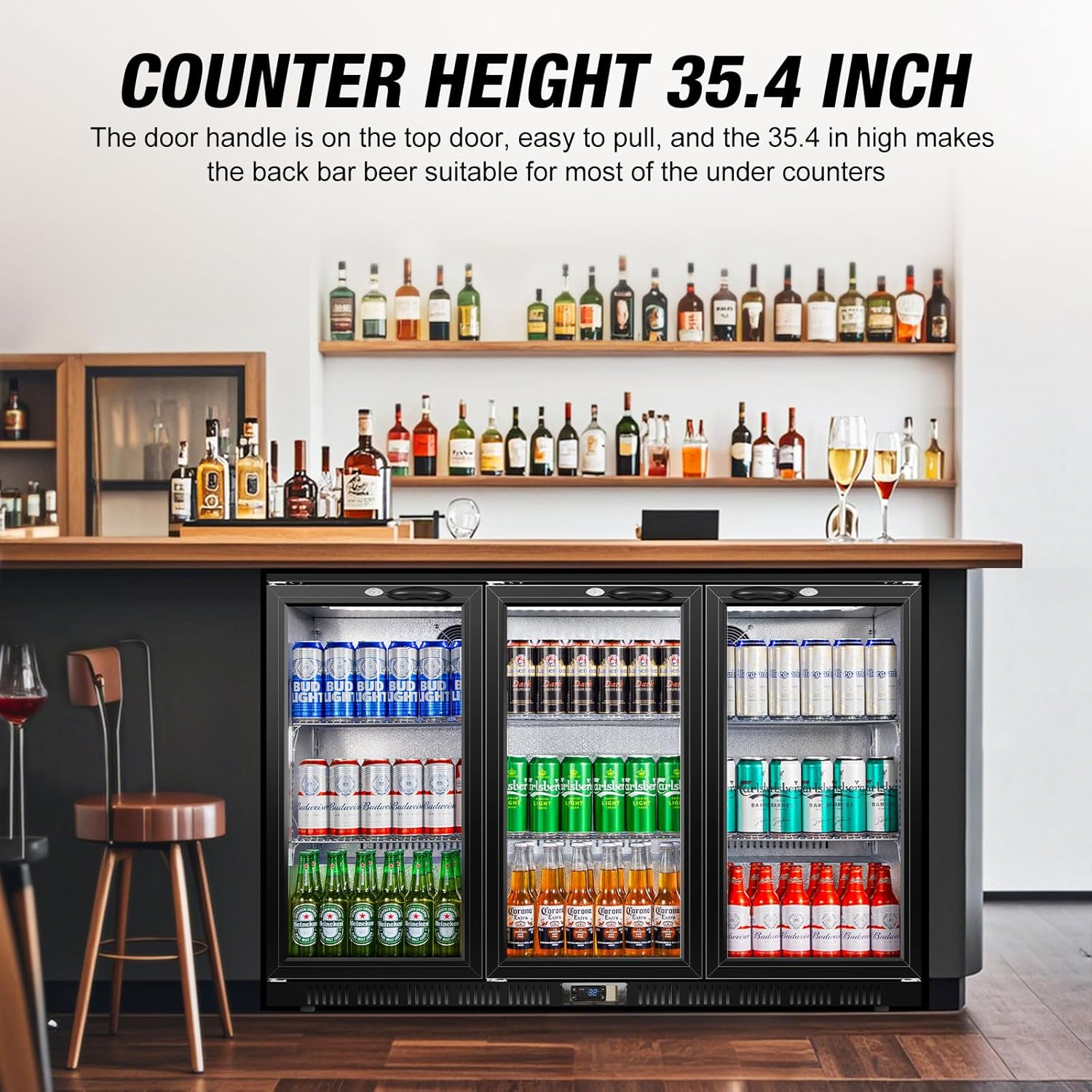 12 CU. FT. 53.15 INCH PERFECT FIT FOR ANY SPACE: With a counter height of 35.43 inches, beverage fridge with Three Glass Doors is designed to fit under most counters seamlessly. It s the ideal beverage refrigerator for your home bar, kitchen, or entertainment space, offering both style and functionality in one sleek unit.