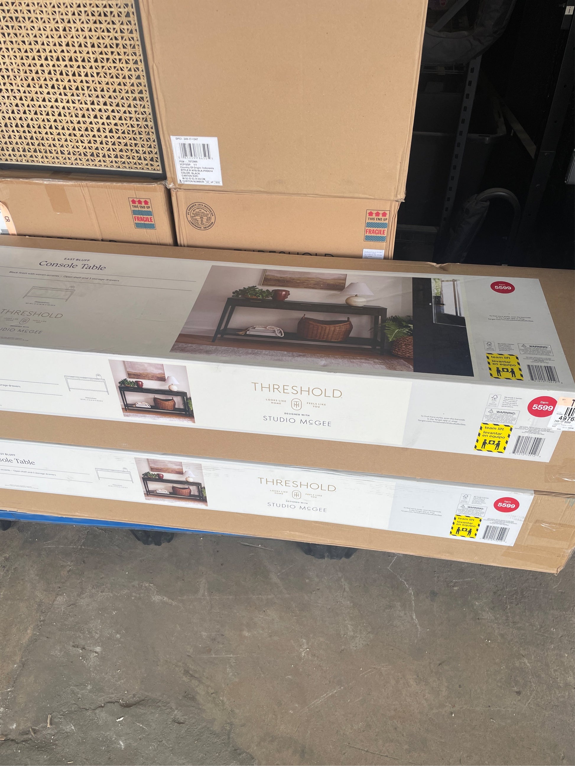 The classic form and modern style of this Woven Drawer Console Table from Threshold designed with Studio McGee brings just the right touch of interesting detail to any living space in your home. This rectangular wood console table comes in a matte black finish that's easy to pair with a range of different decor styles, along with having three pull-out drawers with woven rattan panels for textural appeal. Whether you place it in your entryway or living room, this black console table with a lower shelf makes the perfect functional pick with its easy style. Meet Shea McGee, the designer and stylist behind the brand Studio McGee.