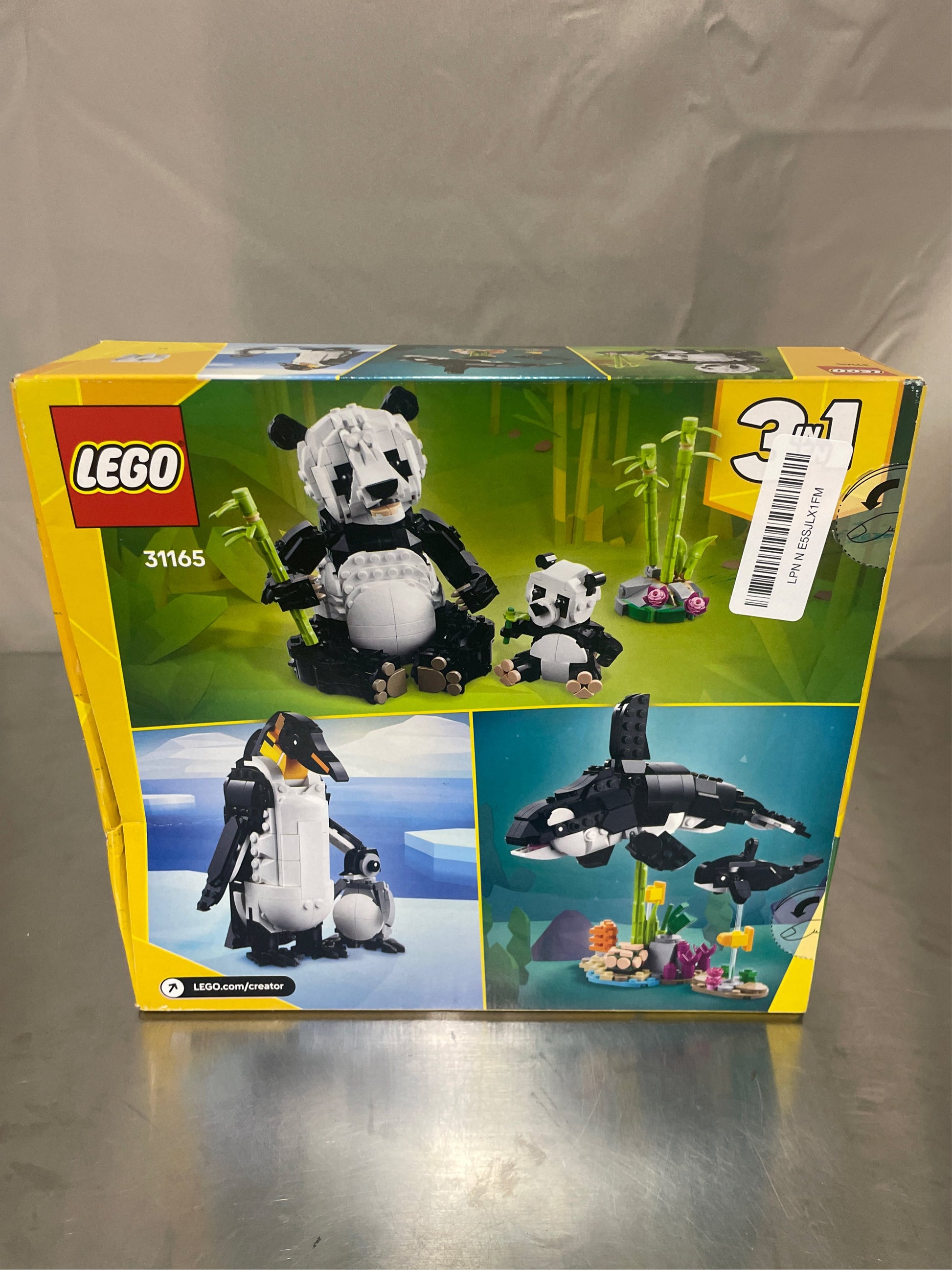 Let your imagination soar wit this LEGO Creator 3-in-1 Wild Animals Panda Family Building Toy 31165. FEATURES The LEGO Creator Wild Animals: Panda Family set lets girls and boys ages 8 years old and older build and rebuild 3 different animal families with the same bricks The panda toy can move its mouth, head, neck and paws the killer whale toy can move its body and fin and the penguin toy can move its head, flippers and feet Find a digital version of the building instructions in the LEGO Builder app Since 1958, LEGO bricks have met the highest industry standards, so they are consistent, compatible and connect and come apart easily every time and it's still that way today WHAT'S INCLUDED LEGO Building Elements: 626 Pieces DETAILS 11.102H x 10.315W x 2.992D Age: 8 years & up No assembly required Plastic Wipe clean Imported Model no. 6527854.