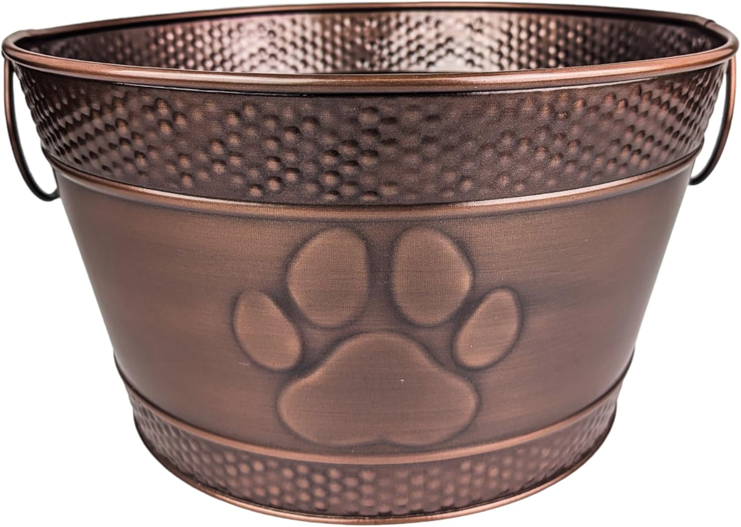 Size: 13.5 x 13.5 x 7.5 - Aside from its robustness, the elegant copper finish adds a touch of sophistication to any living space. Whether your home boasts a modern or rustic interior, the rich and lustrous copper tone blends seamlessly with various decor styles. This eye-catching metal dog toy bin not only serves as a storage solution but also enhances the aesthetics of your home. Say goodbye to scattered toys and cluttered floors! A metal dog toy bin provides ample storage space for your pet's beloved toys, ensuring a neat and organized environment.